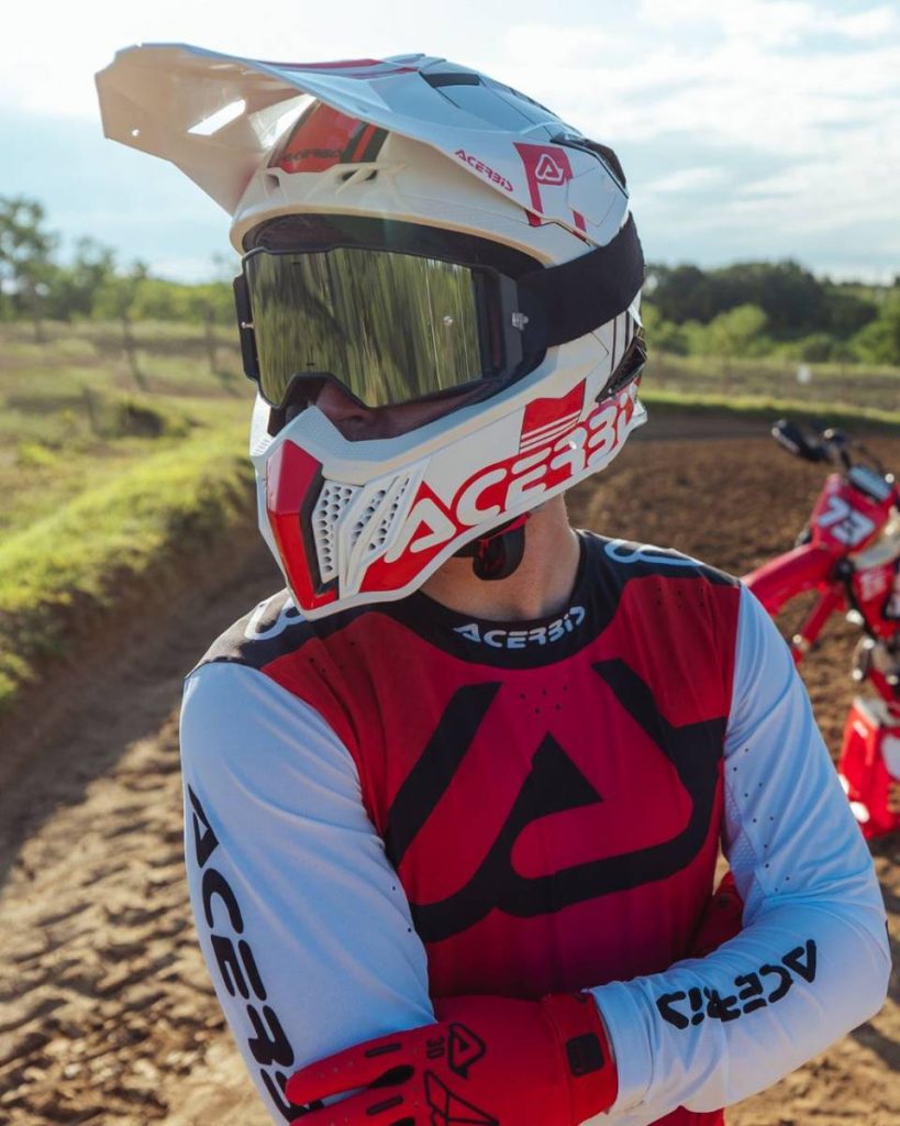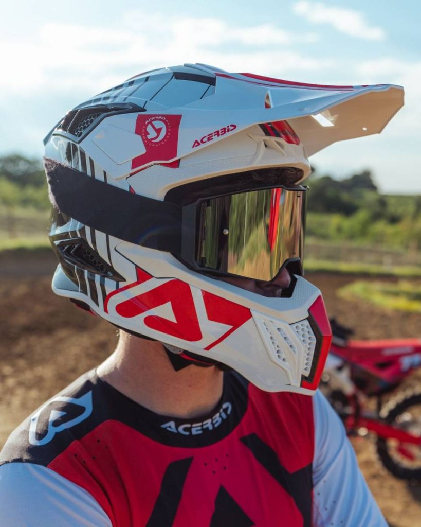 Il nuovo casco offroad Acerbis adotta una chiusura con anello a doppia D in ergal rosso, leggera e sicura. L’interno è completamente sfoderabile, ipoallergenico, traspirante e lavabile, realizzato con tessuti soft-touch ad alta capacità di assorbimento del sudore. I guanciali adottano un innovativo sistema di fissaggio che ne facilita la rimozione, con loghi in silicone per indicare i punti di sgancio. Il casco è inoltre dotato di Quick Release System, per una rimozione rapida in caso di emergenza.