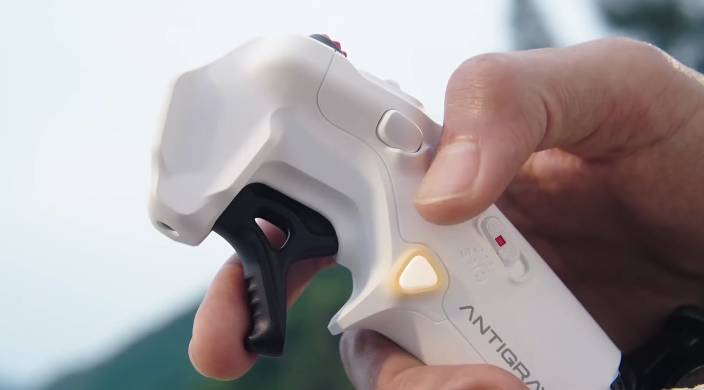 Il controller Grip traduce i movimenti della mano in una direzione di volo precisa, permettendo di pilotare il drone semplicemente puntando verso la destinazione desiderata e premendo il grilletto.