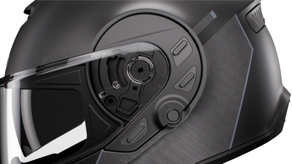 Ulteriori miglioramenti pensati per il motociclista sono integrati in tutto il casco. Una visiera parasole retrattile consente transizioni fluide tra diverse condizioni di luce senza dover cambiare visiera.