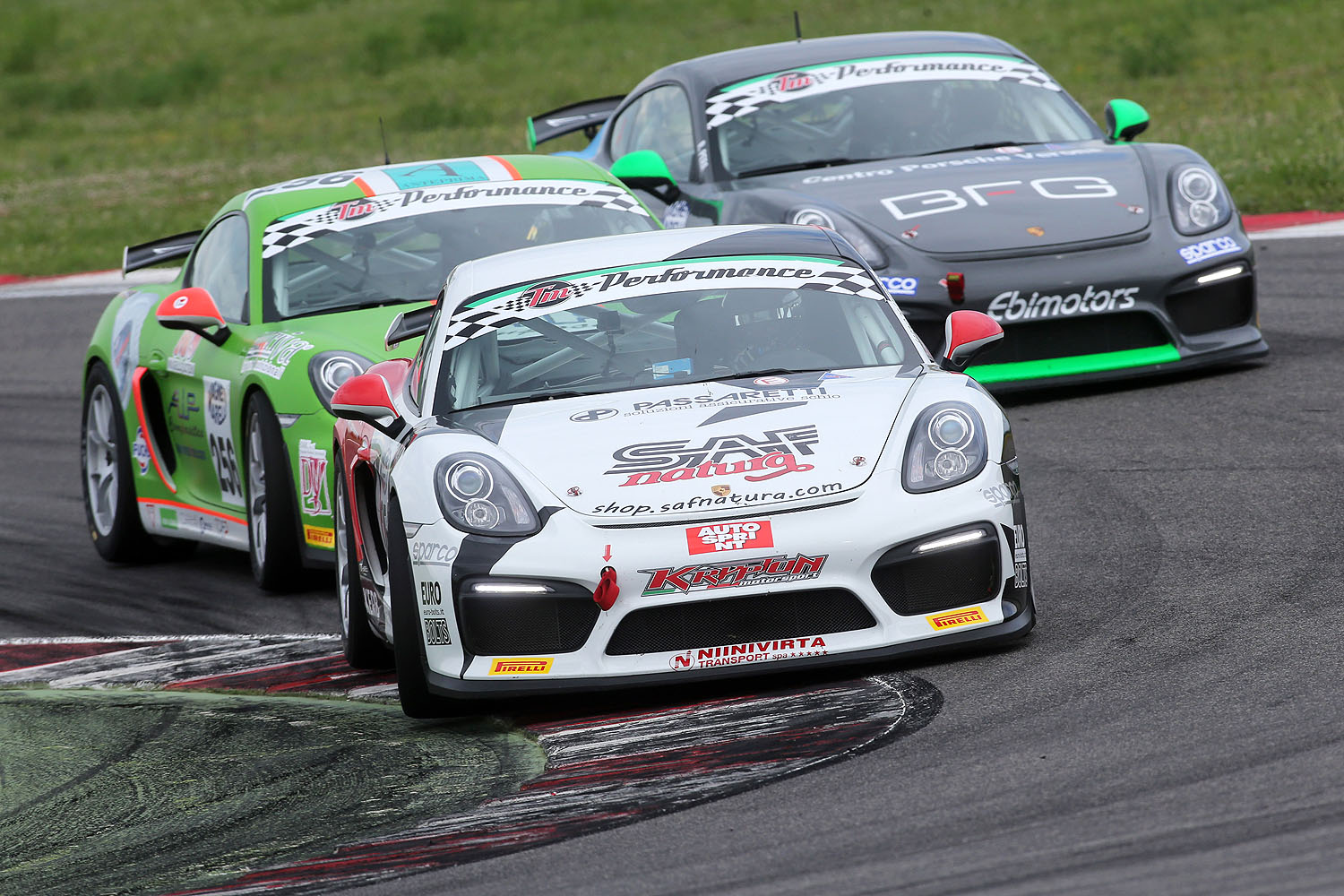 In Gara 1, già in occasione della prima tornata l’attenzione è andata sulle Cayman GT4, con Matteo Zangari (CVG Motorsport) e Marco Iannotta (Ebimotors) in collisione alla Curva 5, con il primo dei due costretto al ritiro a seguito della rottura del radiatore. Il 18enne della Ebimotors invece è riuscito a rimanere in pista con il posteriore leggermente danneggiato. Al comando delle operazioni per buona parte della gara si è visto il venezuelano Jonathan Cecotto (Dinamic Motorsport), che dopo la sosta box ha dato il cambio al compagno di squadra Niccolò Mercatali. Il pilota toscano dopo pochi giri ha accusato la foratura della posteriore sinistra, che lo ha costretto a tornare in pit-lane lasciando libero il primo posto a Sabino De Castro (Krypton Motorsport), che è rimasto in testa fino alla bandiera a scacchi. Poca fortuna anche per il dominatore di Imola Riccardo Pera, anche lui vittima di una foratura che gli ha fatto perdere la seconda posizione nelle battute finali della gara, per poi terminare quarto alle spalle di Piccioli e Mercatali, rispettivamente secondo e terzo.