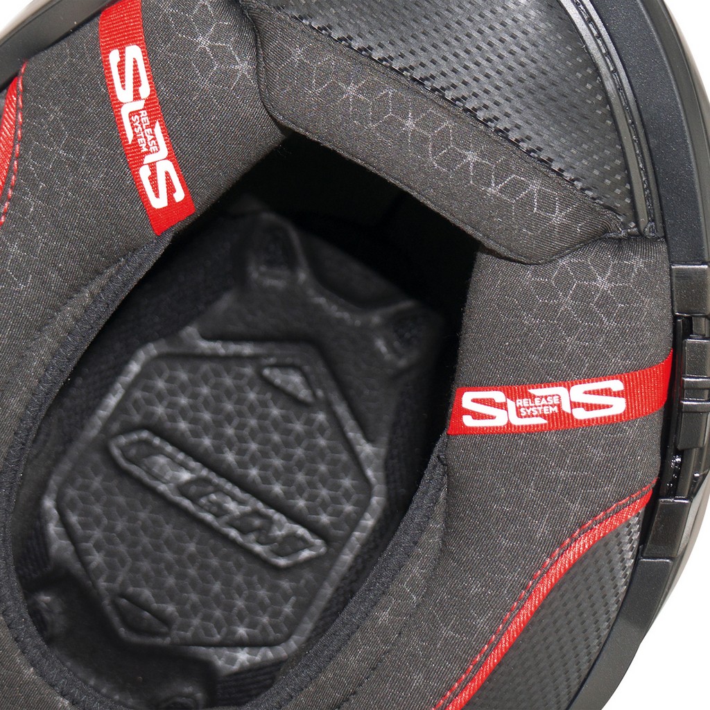 360 KAD è inoltre dotato di SOS Release System, per il rilascio rapido dei guanciali in caso di emergenza, mentre i deflettori copri-mento e copri-nuca impediscono all’aria di entrare nel casco, aumentando stabilità e silenziosità. Tra le altre dotazioni di questo casco anche la visiera parasole interna a scomparsa, la predisposizione per l’interfono, il deflettore paranaso, la fibbia micrometrica in metallo e l’elastico fermacinturino.