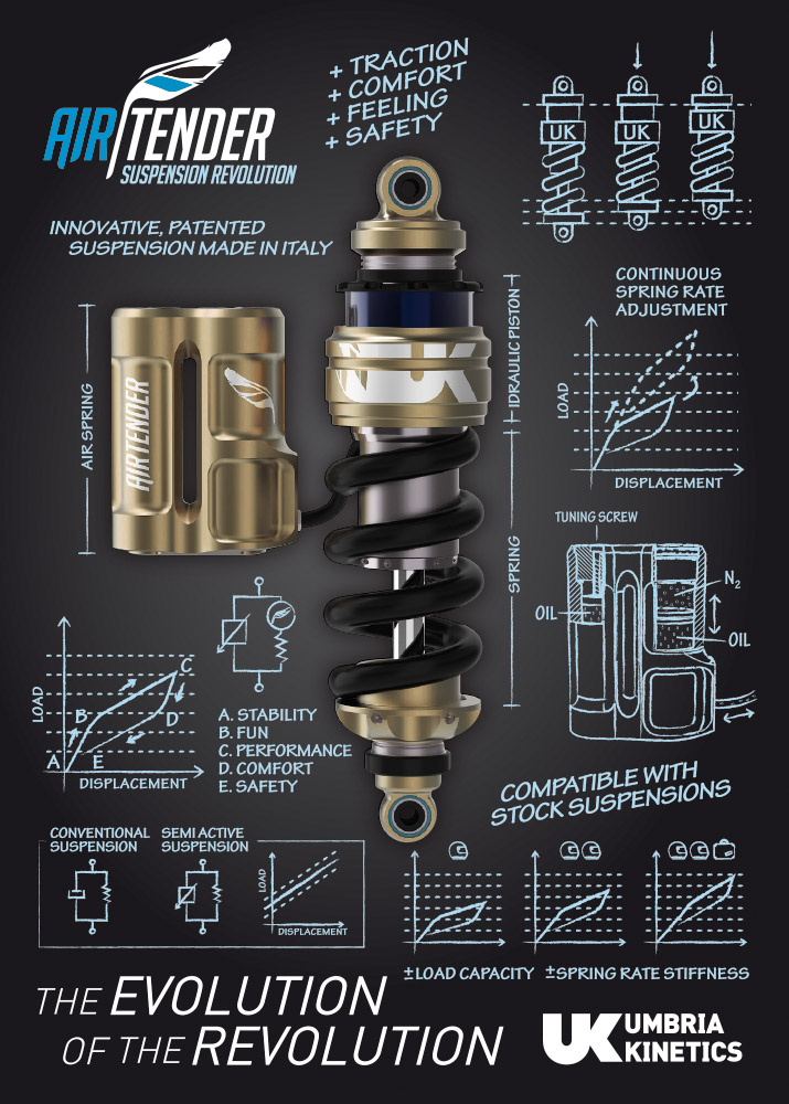 Abbiamo incontrato all’EICMA 2018, presso il loro stand, l’Ing. Gabriele Bellani, uno dei due soci fondatori della AirTender, azienda Umbra che ha inventato e sviluppato un nuovo sistema che permette di migliorare notevolmente la risposta su strada delle sospensioni tradizionali.