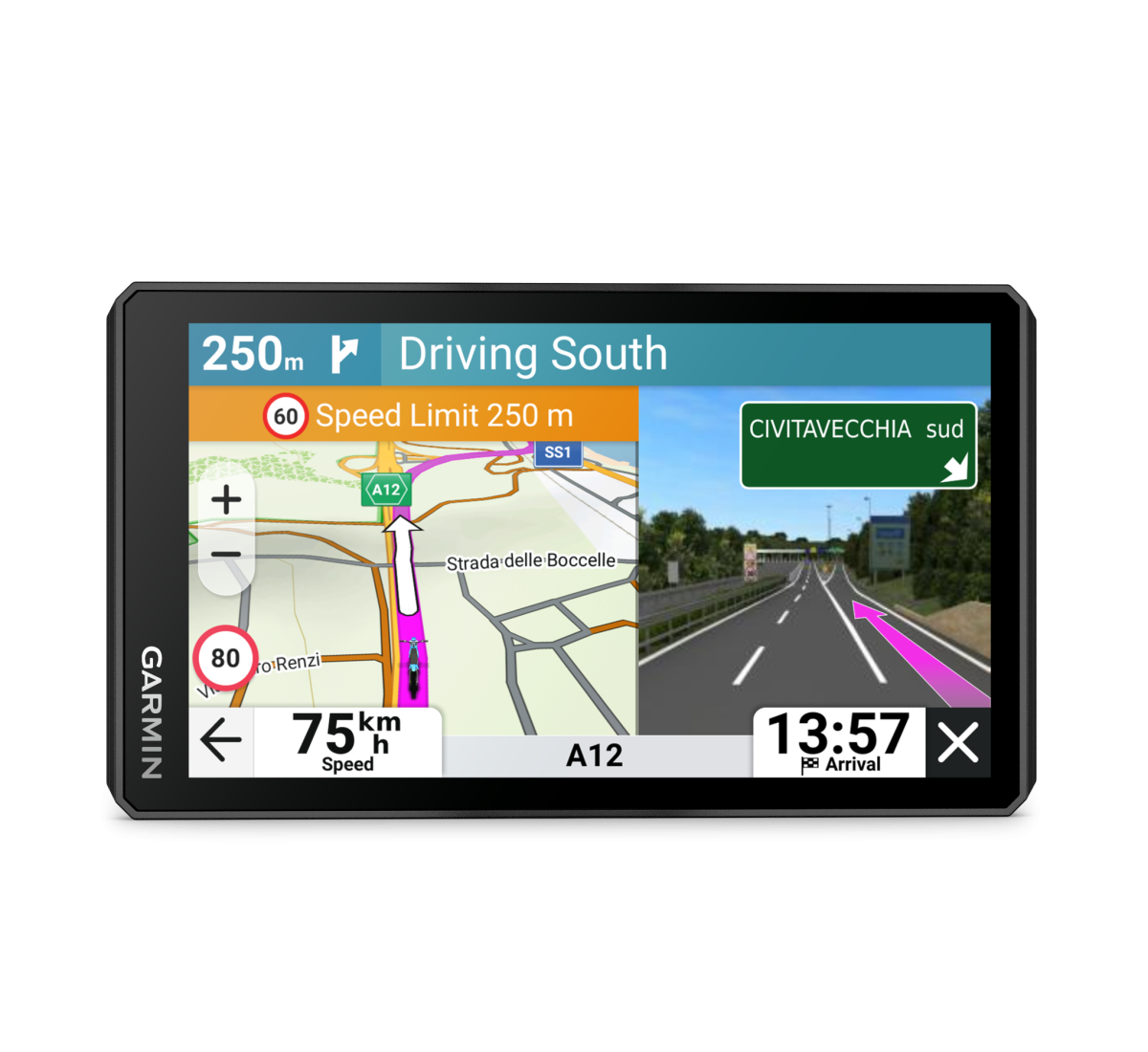 • Accessori: è possibile arricchire ulteriormente l’esperienza di guida con altri prodotti Garmin compatibili (ciascuno acquistabile separatamente), tra cui il radar zūmo™ R1, per il monitoraggio degli angoli ciechi, il controller a manubrio, per gestire il navigatore satellitare senza togliere le mani dal manubrio, o con un comunicatore satellitare serie inReach2 per rimanere connessi anche fuori dalla rete cellulare.