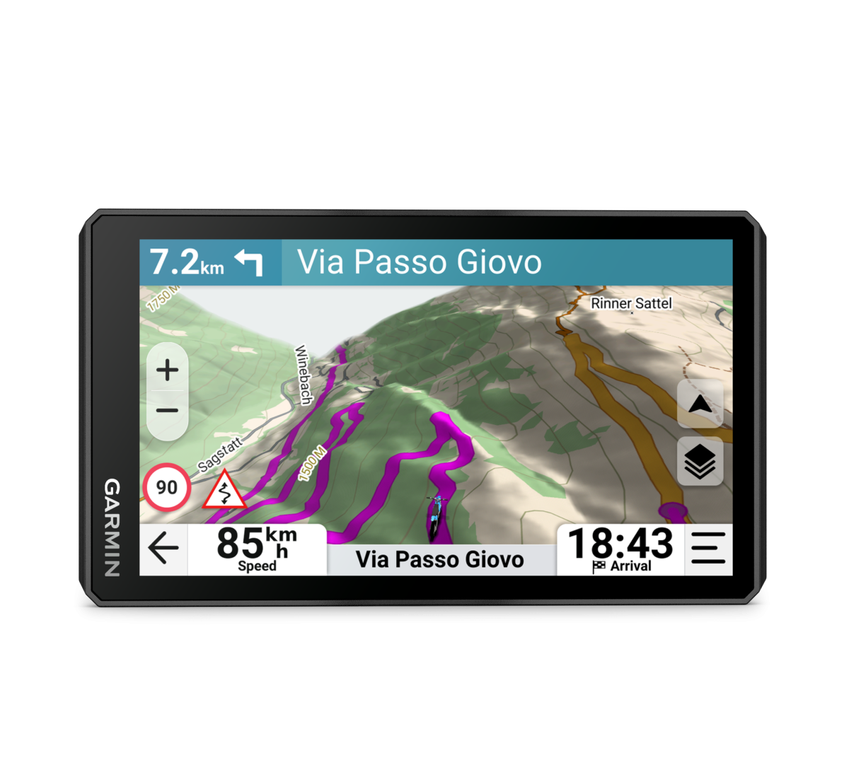 • Per un viaggio suggestivo: la funzione Garmin Adventurous Route™ indica percorsi collinari, tortuosi, panoramici ed emozionanti, mentre Great Rides permette di scoprire i percorsi più popolari e più apprezzati dagli altri motociclisti. Free ride: regala la libertà di esplorare guidati solo da una bussola, una semplice freccia con distanza e direzione verso la destinazione.