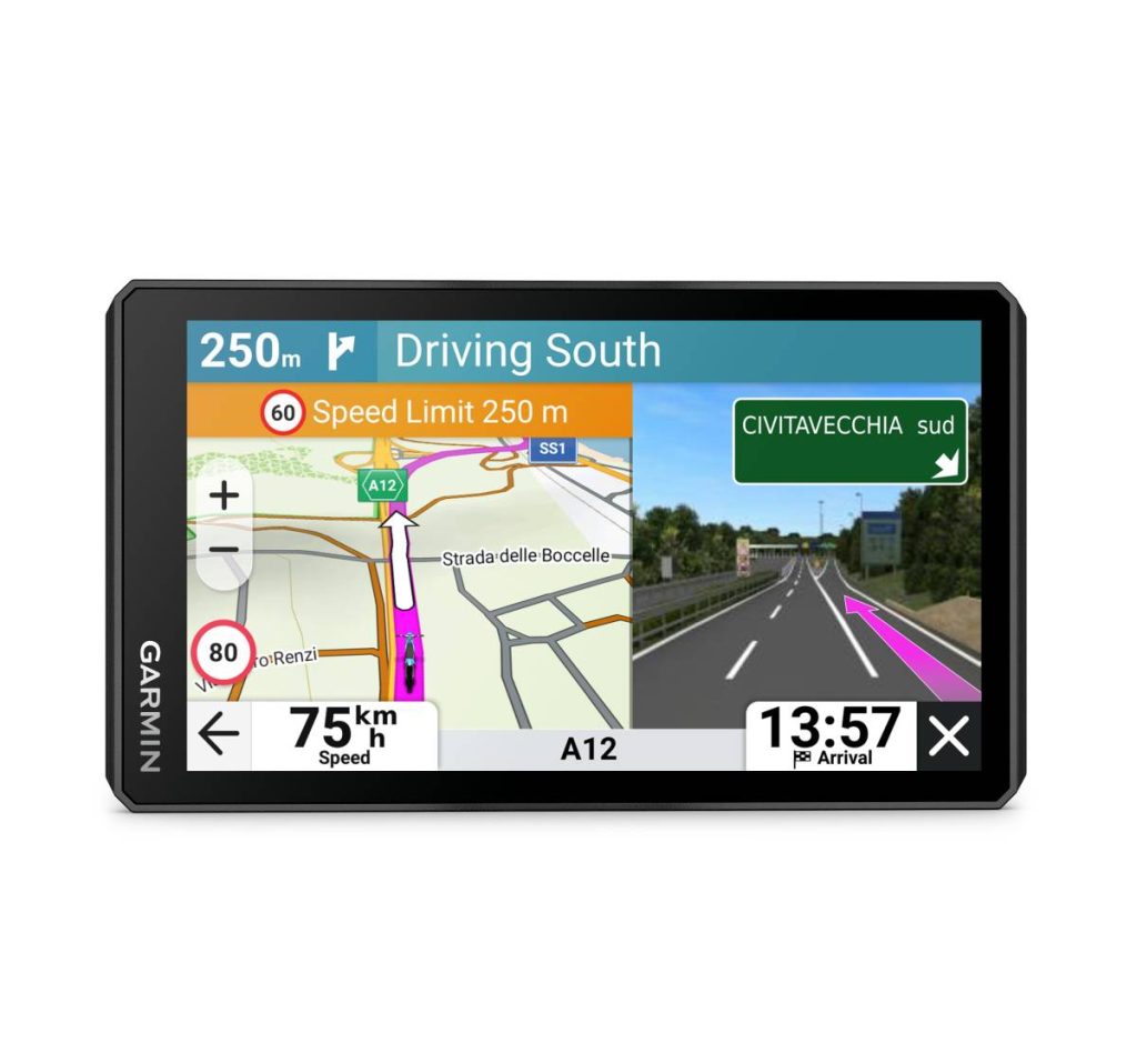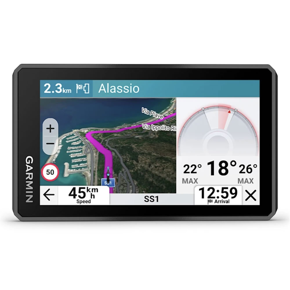 Il dispositivo è dotato di uno schermo luminoso e ad alto contrasto, progettato per garantire una perfetta visibilità anche sotto la luce diretta del sole. L’interfaccia è pensata per essere utilizzata con i guanti e per offrire una lettura immediata delle informazioni di navigazione.