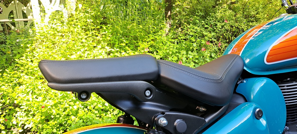 Una seduta che anche sulle medie distanze non affatica e che non grava troppo sulla schiena, come avviene spesso anche su moto di cilindrata assai superiore. Il pilota ha a disposizione un ampio sellone ben imbottito che esalta la linea della moto nella guida in solitario, ma anche il passeggero non se la passa affatto male quando viene montata la porzione di sella a lui dedicata. Mancano le maniglie a cui aggrapparsi, vero, ma le accelerazioni non sono certo da dragster e sicuramente qualche accessorio aftermarket potrà sopperire a questa mancanza.