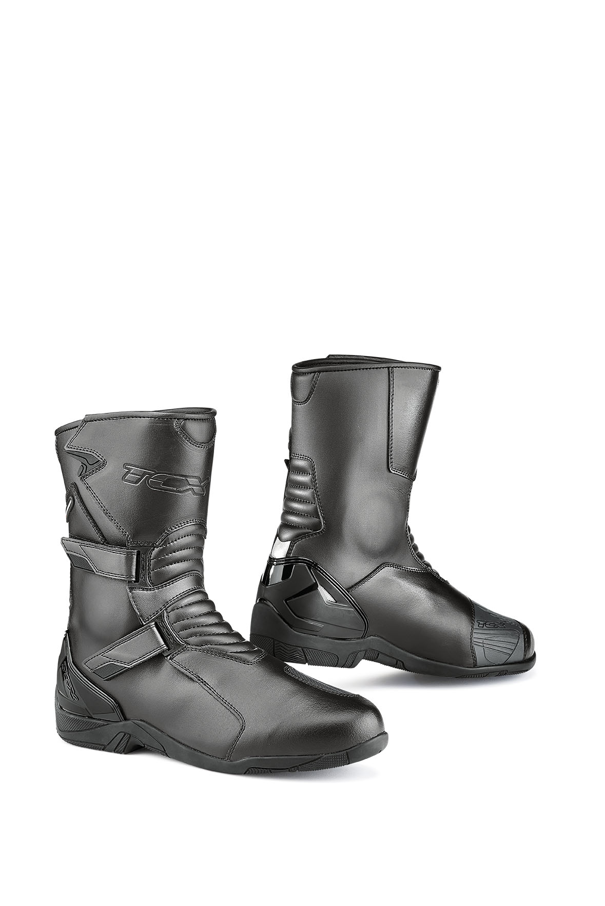 La linea touring si arricchisce del nuovo modello DRIFTER WATERPROOF, uno stivale dal look inedito ma realizzato seguendo la tradizionale costruzione “Ideal” con doppia cucitura e sottopiede intermedio per aumentarne la robustezza. La struttura combina elementi dallo stile artigianale, vintage, a dettagli estremamente tecnici. La tomaia è in morbida pelle marrone e presenta una protezione cambio marcia cucita tono su tono che ne enfatizza l’aspetto autentico; per migliorare il comfort e la flessibilità di calzata lo stivale è stato dotato di soffietto anteriore e posteriore in microfibra. Internamente lo stivale è rivestito con una fodera resistente all’acqua per permettere un utilizzo anche in condizioni metereologiche avverse ed è dotato di una protezione contro il calore in pelle scamosciata. Lo stivale dispone di un ottimo livello di protezione, con gli inserti nell’area dei malleoli e il rinforzo tibia in poliuretano. Il sistema di chiusura si compone di tre leve in alluminio, resistenti all’usura, intercambiabili, dal design ergonomico che ne facilita l’apertura/chiusura. La suola con battistrada tassellato, disegnato per garantire massima aderenza su tutte le superfici, completa la costruzione dello stivale DRIFTER WATERPROOF, un prodotto che, grazie a spiccate doti di impermeabilità e versatilità, è ideale per un utilizzo on/off, su strada e sterrato. Lo stivale è Certificato CE secondo la nuova normativa EN 13634:2015.