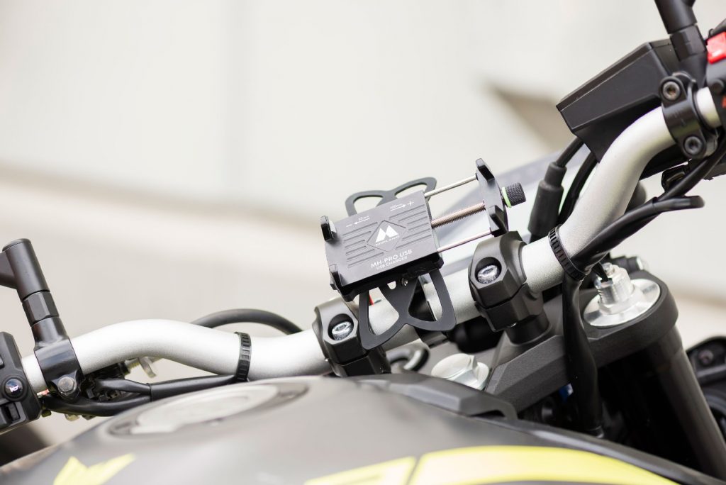 MH-PRO USB – Il sistema meccanico in alluminio aggancia il device (fino a 6,2”) in sicurezza e resiste alle intemperie (waterproof IP65). Indicato da MIDLAND come “compagno” per lunghi viaggi, anche questo modello permette di avere sempre lo smartphone carico grazie alla presenza di una presa USB da collegare via cavo. Ancora da segnalare è la griglia elastica di sicurezza, in silicone, inclusa in confezione: essa evita spostamenti dello smartphone in ogni condizione di guida e non interferisce con la ripresa video.