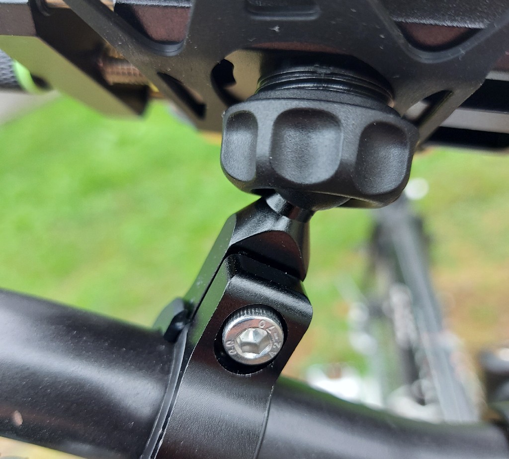 Il tutto è ancorato al classico nodo sferico vincolato al braccialetto, anch’esso in metallo. Quest’ultimo grazie agli spessori e alle guarnizioni in gomma può essere montato su manubri da 22 a 32 mm di diametro. Nella confezione è anche presente una staffa per fissare il supporto allo specchietto retrovisore, qualora si utilizzi uno scooter o si preferisca questa soluzione al classico posizionamento sul manubrio.