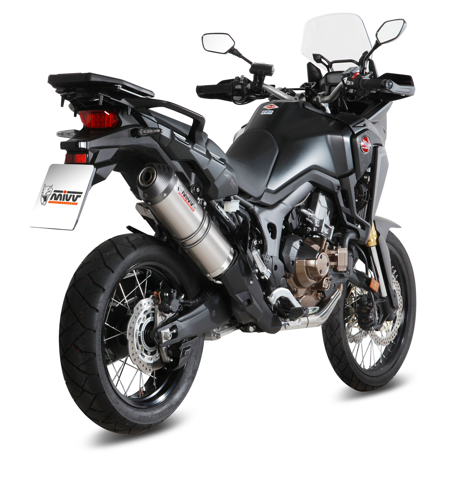 Speed Edge – Un progetto davvero innovativo, capace di coniugare design e prestazioni. Top di gamma di MIVV, lo Speed Edge nasce “schiacciato” sul lato interno per accostarsi al massimo al telaio della moto e offre un notevole risparmio di peso. A livello di materiali utilizzati segnaliamo l’utilizzo di fascetta di ancoraggio e coppa in pregiato carbonio (twill 3k ed impregnato con speciali resine per resistere alle alte temperature). Il corpo è in inox, proposto per l’Africa Twin in finitura standard o nella grintosa Steel Black.