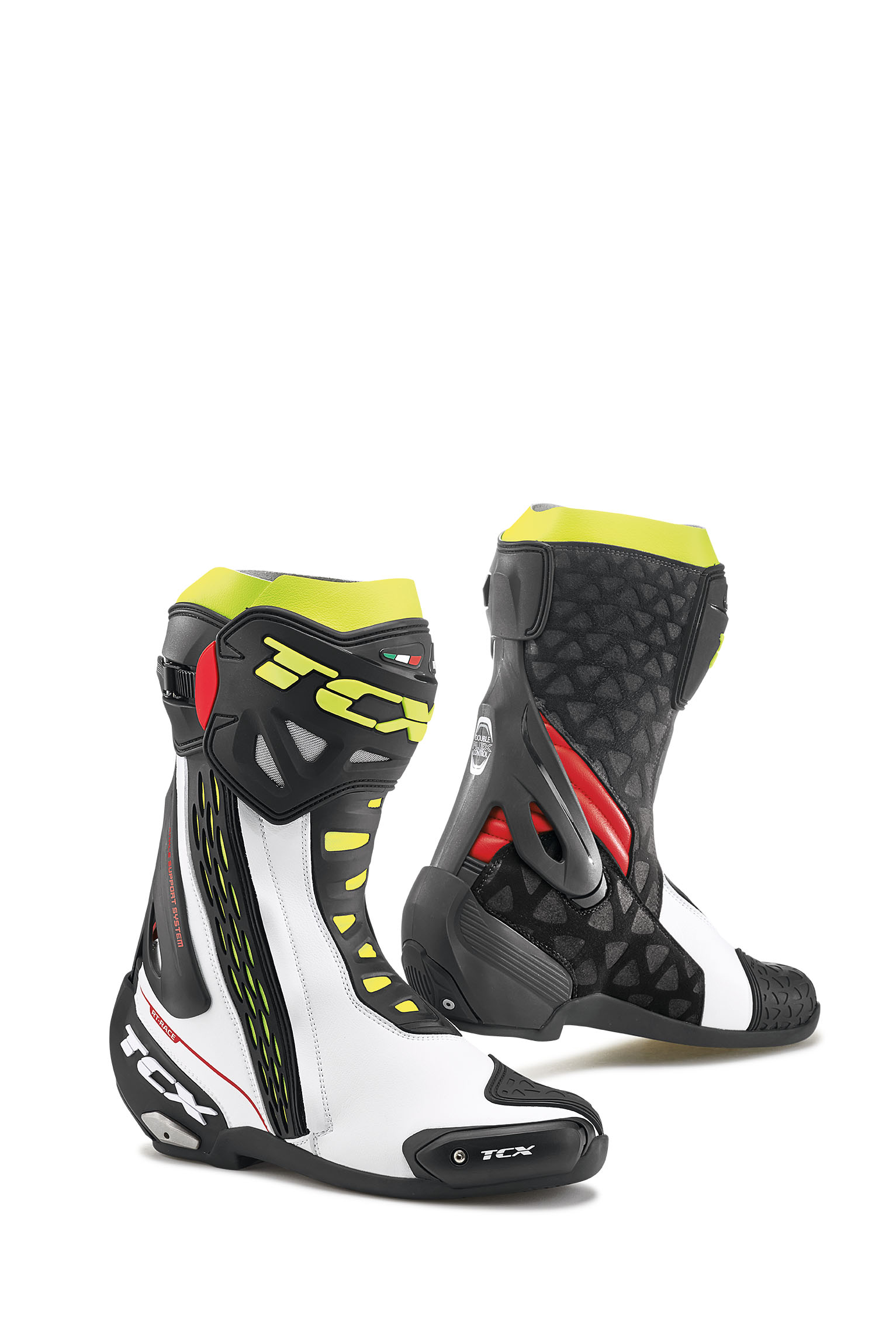 RT-RACE è il nuovo stivale della linea racing TCX, un modello dal design nuovo e con un look aggressivo, idoneo per un utilizzo stradale ma estremamente performante anche in caso di impiego su pista