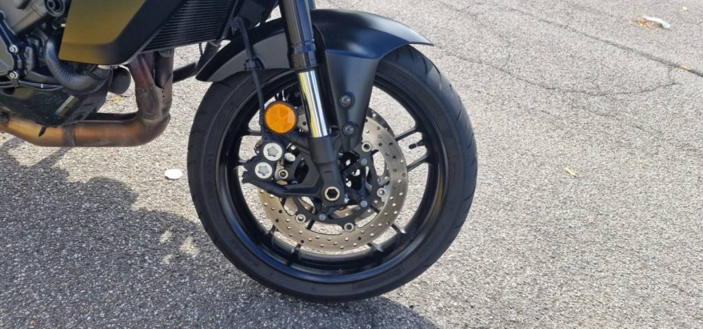 Freni performanti e molto modulabili, dove all’avantreno le doppie pinze a 4 pistoncini mordono dischi da 298 mm , mentre aumento il posteriore da 267 mm al posteriore con pinza a due pistoncini. Quest’ultimo è un dettaglio importante in quanto aumenta sia il potere frenante che il raffreddamento, presente un ABS di tipo cornering.