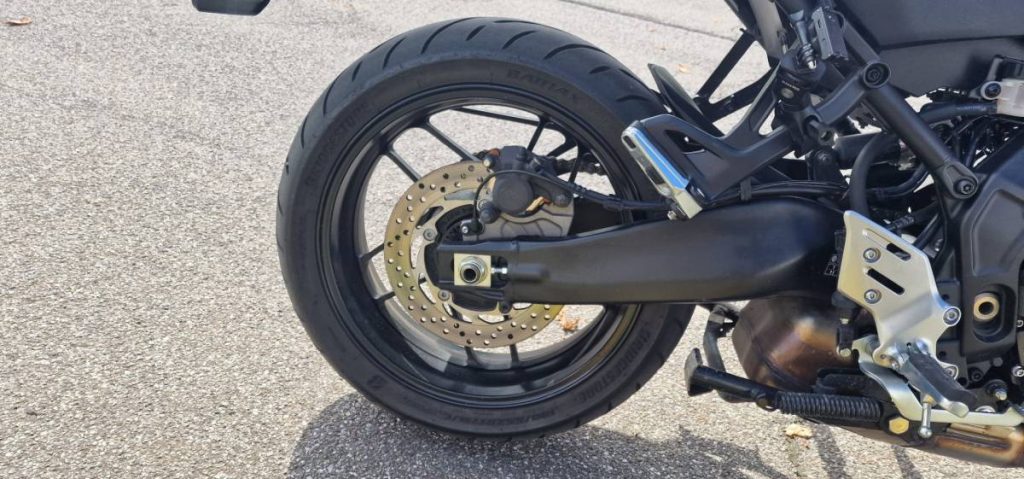 Le ruote sportive 120/70 Zr 17 e 180/55 Zr 17 consentono di scegliere le “scarpe” più adatte per ogni impiego, mentre quelle di primo equipaggiamento BRIDGESTONE BATTLAX SPORT TOURING T32 più per un communting di lunga durata.