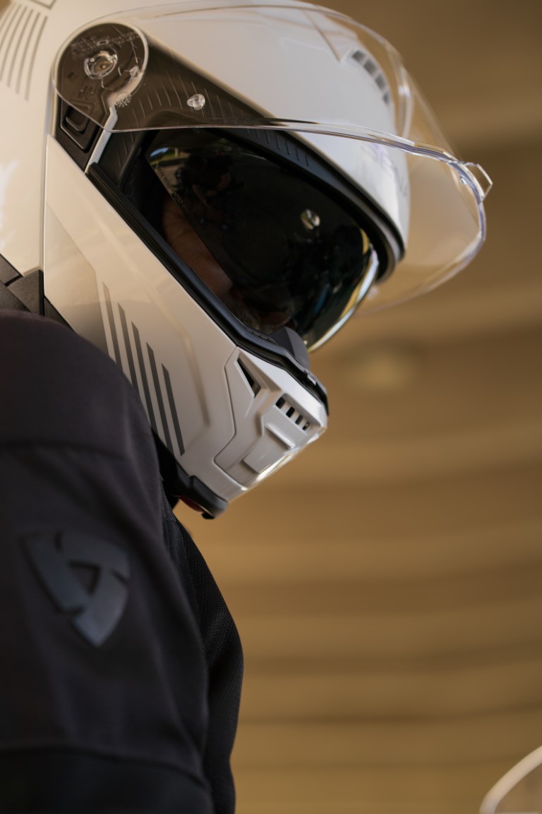 Un casco modulare tradizionale offre già una vera versatilità La modularità di un casco tradizionale è legata alla sua progettazione “meccanica”. Con la mentoniera sollevata, si trasforma in un casco Jet, pratico in città per migliorare la visibilità o aumentare la ventilazione. Con la mentoniera abbassata, offre una maggiore protezione e un miglior comfort alle velocità più elevate. Su un casco modulare tradizionale, la modularità si ferma qui.
