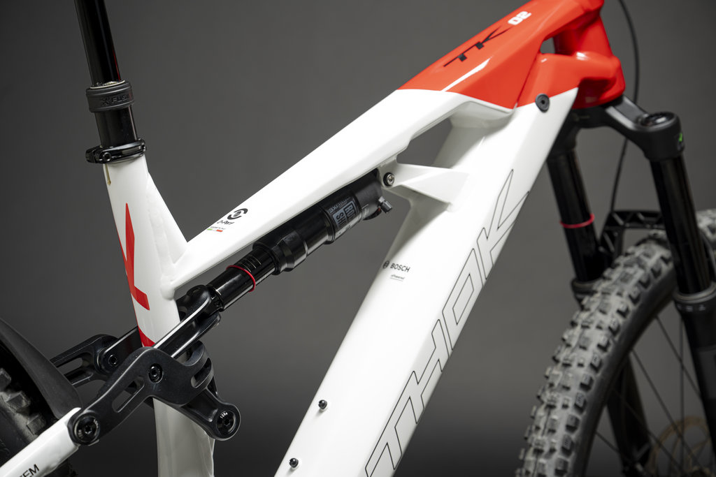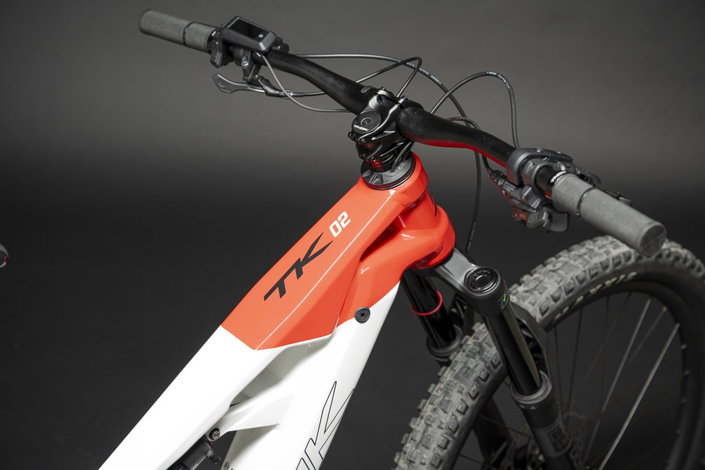 TK02 è spinta dal Bosch Performance Line CX Gen5, ultima evoluzione del sistema di assistenza Bosch dedicato alle e-MTB, abbinato a una batteria integrata da 800 Wh. Il sistema è compatibile anche con la batteria da 600 Wh e con l’extender Powermore da 250 Wh.