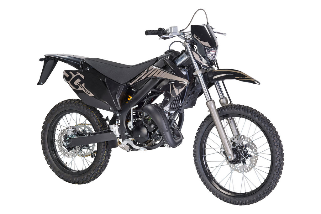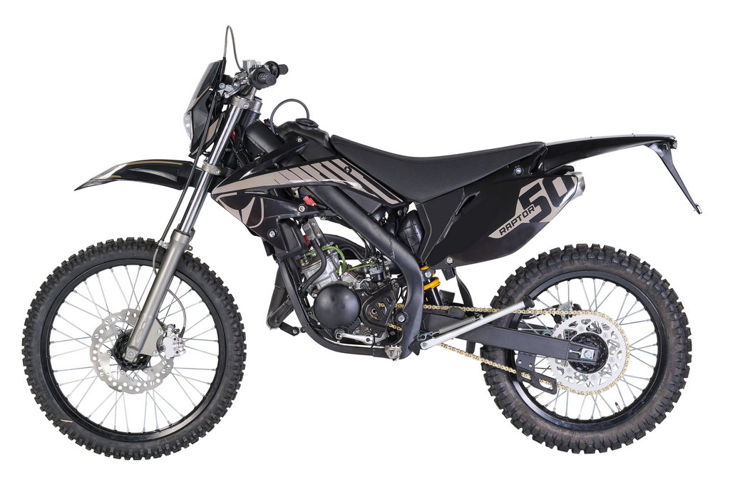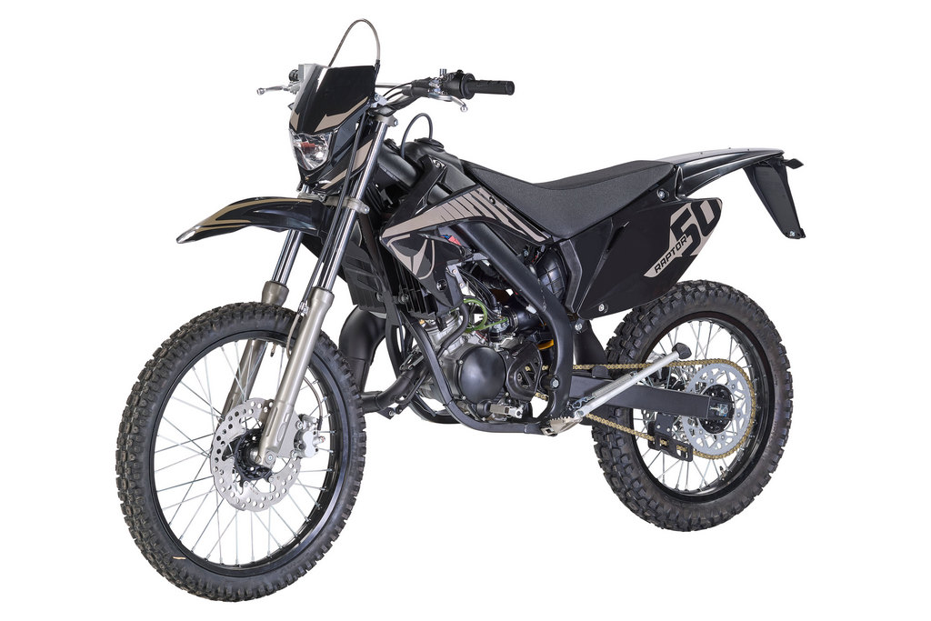 Derivata direttamente dalla moto che ha portato Mattia Cagnoni al traguardo della 99a edizione della Sei Giorni di Enduro, la Raptor 50 unisce DNA da gara e stile autentico in una moto leggera, agile e piena di carattere. Sotto la sua carrozzeria compatta batte il cuore della nuova motorizzazione Minarelli 50 cc 2T di ultima generazione, unito a un telaio perimetrale derivato dalle moto da cross. Prestazioni, affidabilità e stile si fondono in un mix perfetto per chi vuole iniziare col piede giusto, anzi, con la marcia giusta.