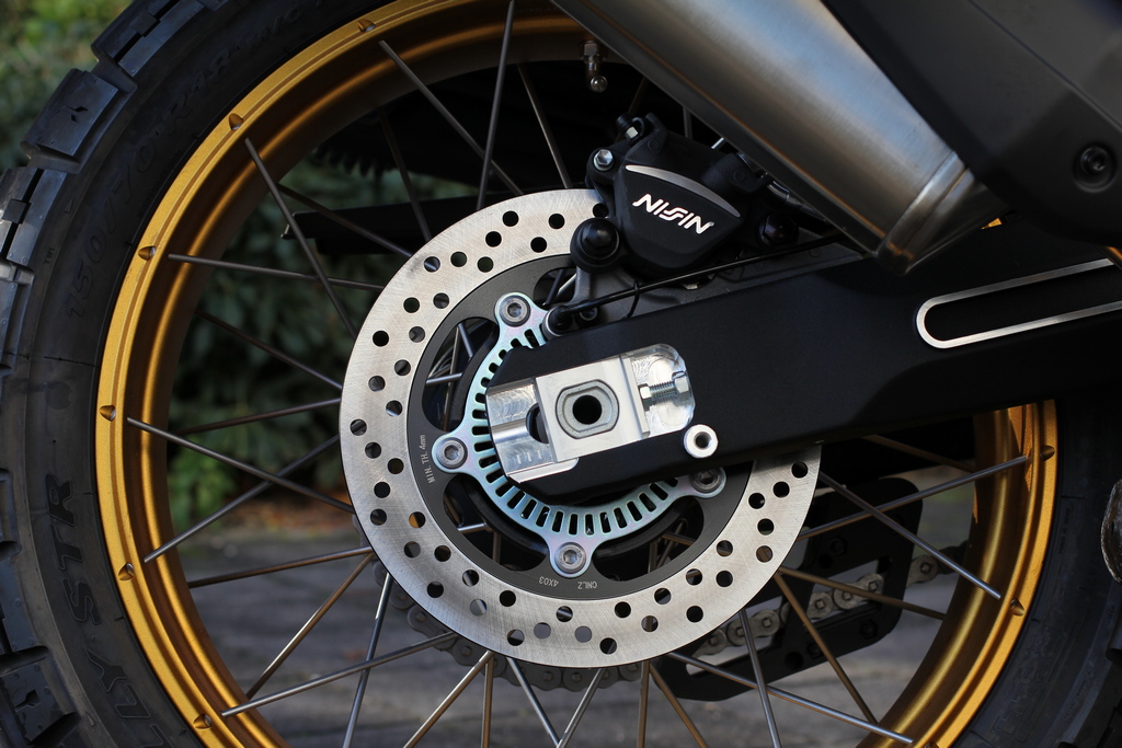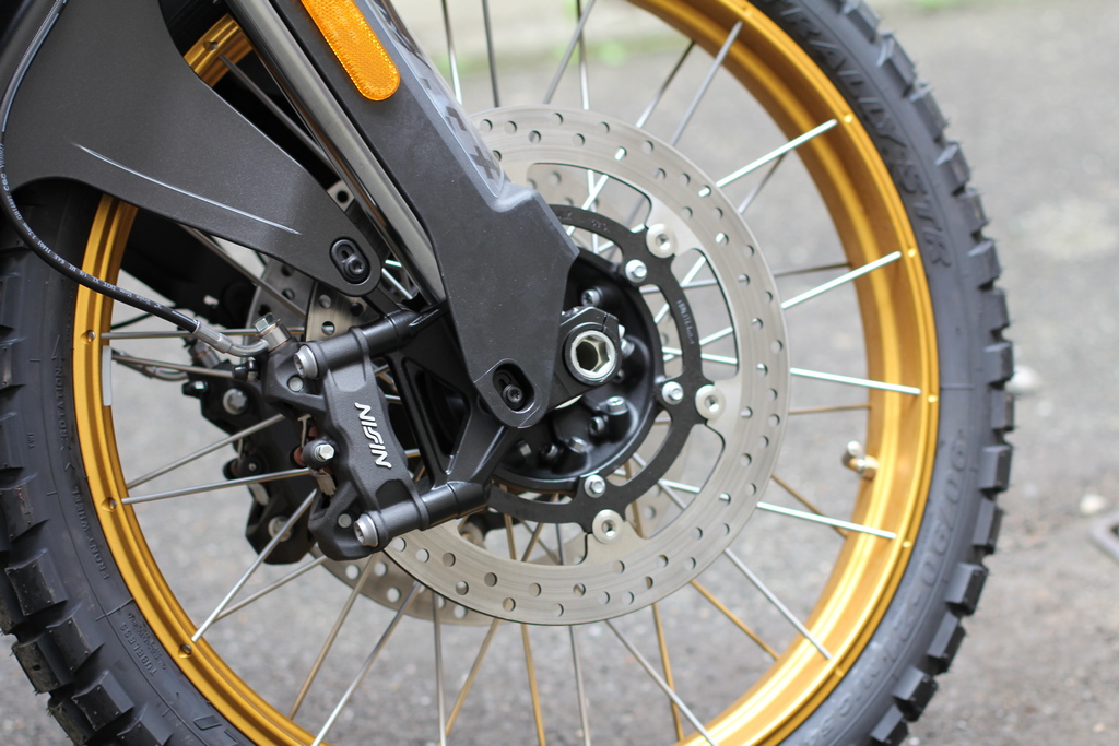 A sottolineare la qualità complessiva della componentistica l’impianto frenante è marchiato Nissin e prevede all’anteriore pinze radiali a 4 pistoncini, con dischi da 310 mm, e al posteriore un singolo disco da 240 mm con pinza flottante a 1 pistoncino. Un impianto che nella pratica si è rivelato non particolarmente aggressivo e che per questo risulta perfetto per un utilizzo in fuoristrada. Su strada più mordente in prima pinzata non guasterebbe, ma come sempre è una questione di compromesso e per garantire una frenata efficace in offroad bisogna sacrificare qualcosa su strada. A chi vorrà usarla prevalentemente in questo contesto basterà probabilmente sostituire le pastiglie per avere maggiori prestazioni. Abs e Traction Control sono escludibili e per il primo possiamo anche scegliere se escluderlo solo sulla ruota posteriore o su entrambe le ruote. Anche qui si vede la cura per la funzionalità e i dettagli perché per disabilitare i controlli non occorre entrare nei menu di sistema, basta premere gli appositi pulsanti presenti sui blocchetti. Al successivo riavvio per ragioni di sicurezza la moto riattiva tutto, ma proprio grazie ai pulsanti bastano pochi secondi per escluderli nuovamente. Peccato solo che il controllo di trazione sia un po’ troppo invasivo. Speriamo che con un prossimo aggiornamento i tecnici riescano a migliorarne il comportamento.