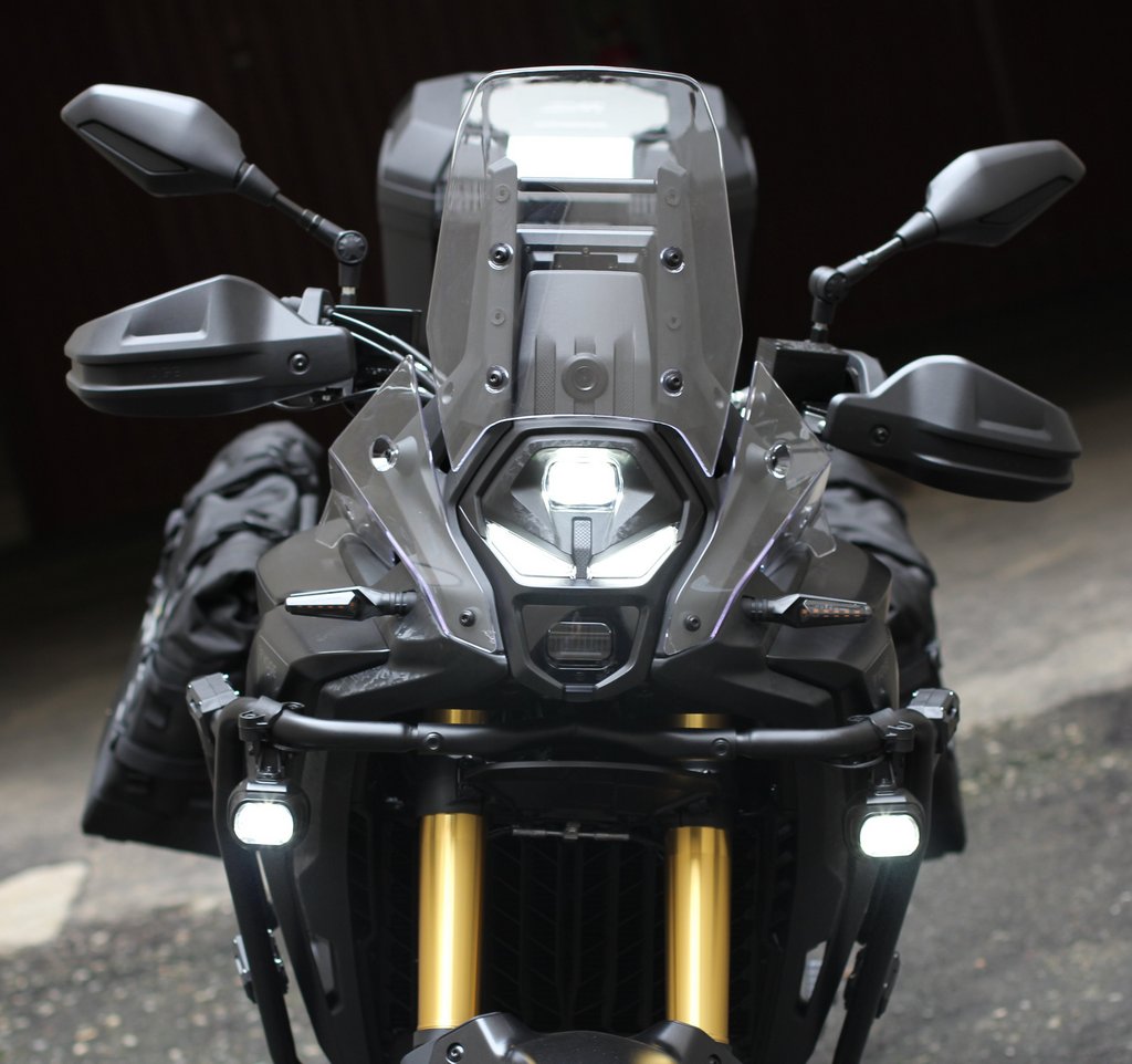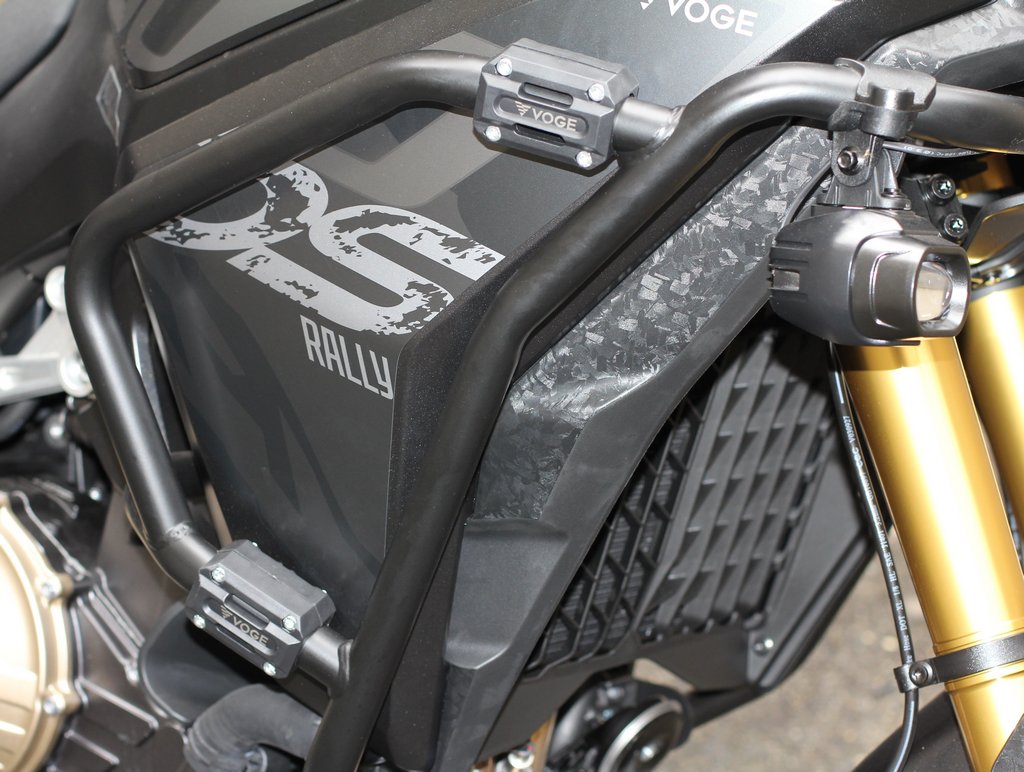 Più volte ho letto che la Voge 800 Rally assomiglia a tanti altri modelli già in commercio e se pensiamo a un moto come a un mezzo che ha un telaio, due ruote, un manubrio e delle sovrastrutture potrei anche essere d’accordo. Per il resto mi sento di dissentire perché la moto ha una sua personalità e a volte sembra che certi commenti siano più rivolti al fatto che se un prodotto è di provenienza cinese allora debba essere per forza una copia di qualcosa d’altro. In alcuni casi è così, in altri no. È evidente che una moto che si rifà a quelle da deserto avrà determinate caratteristiche, ma la Voge 800 Rally ha una sua personalità non solo nella parte frontale, dove offre un colpo d’occhio davvero notevole grazie ai fari full led (tra l’altro con welcome light e spegnimento ritardato) e al grande serbatoio protetto dalle crash bar, ben integrate e che ospitano anche i faretti di profondità (tutto di serie).