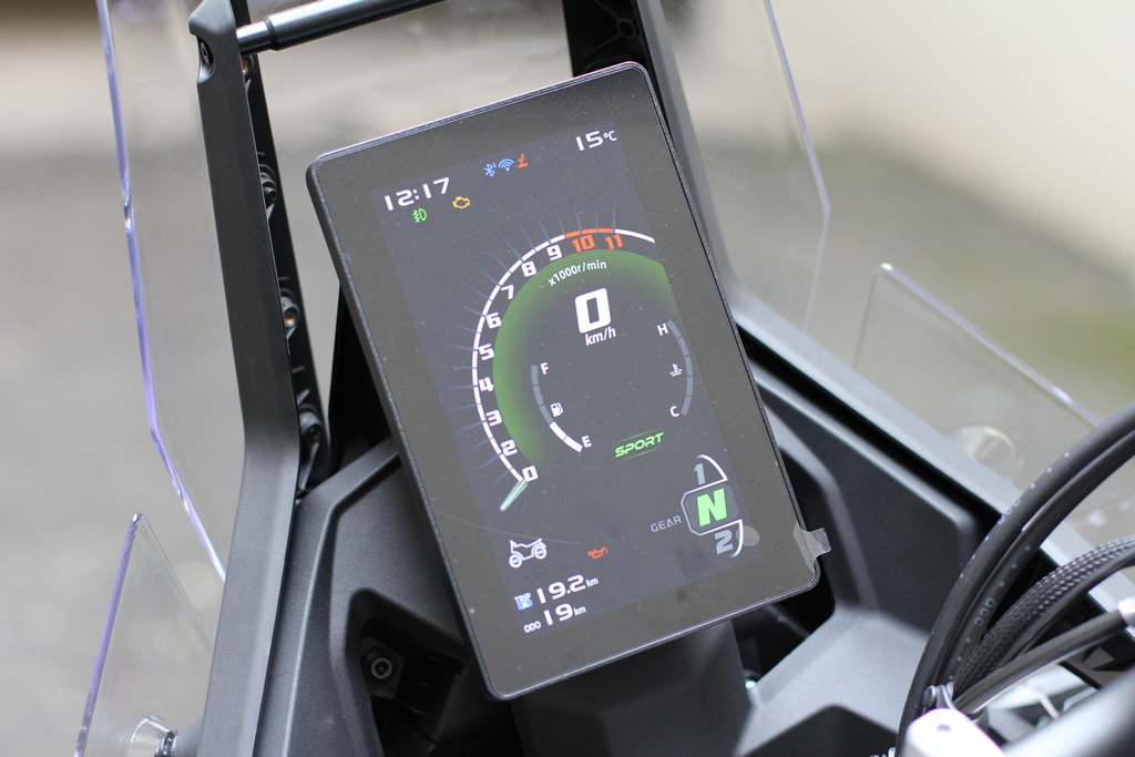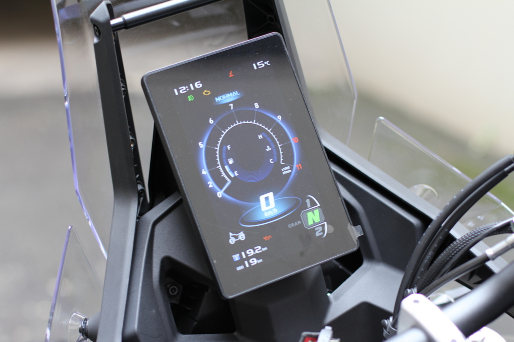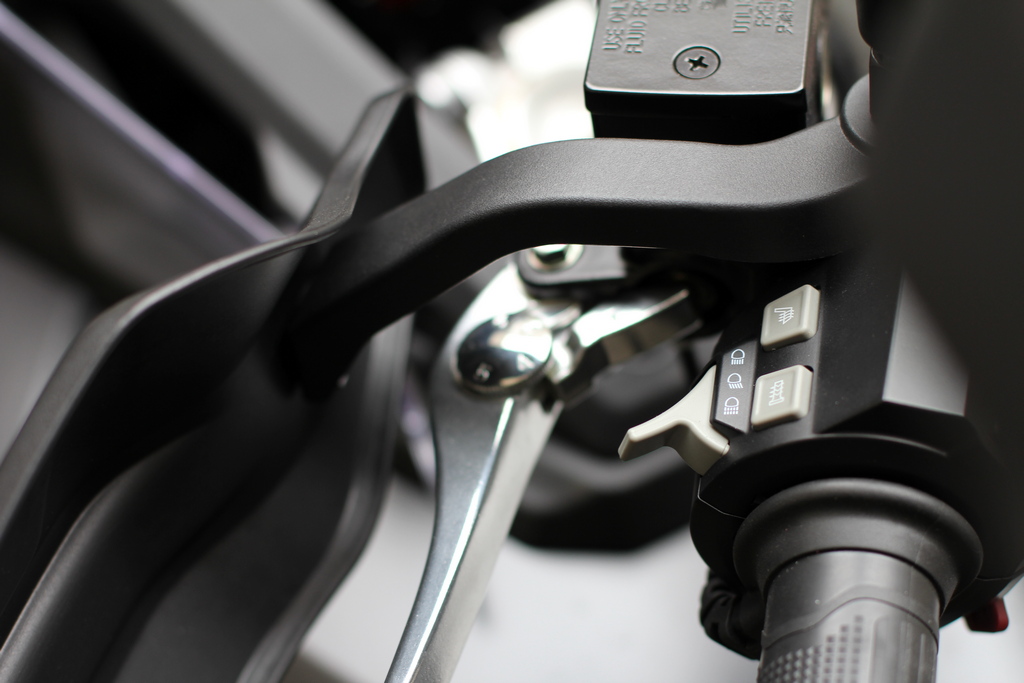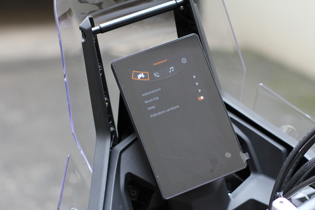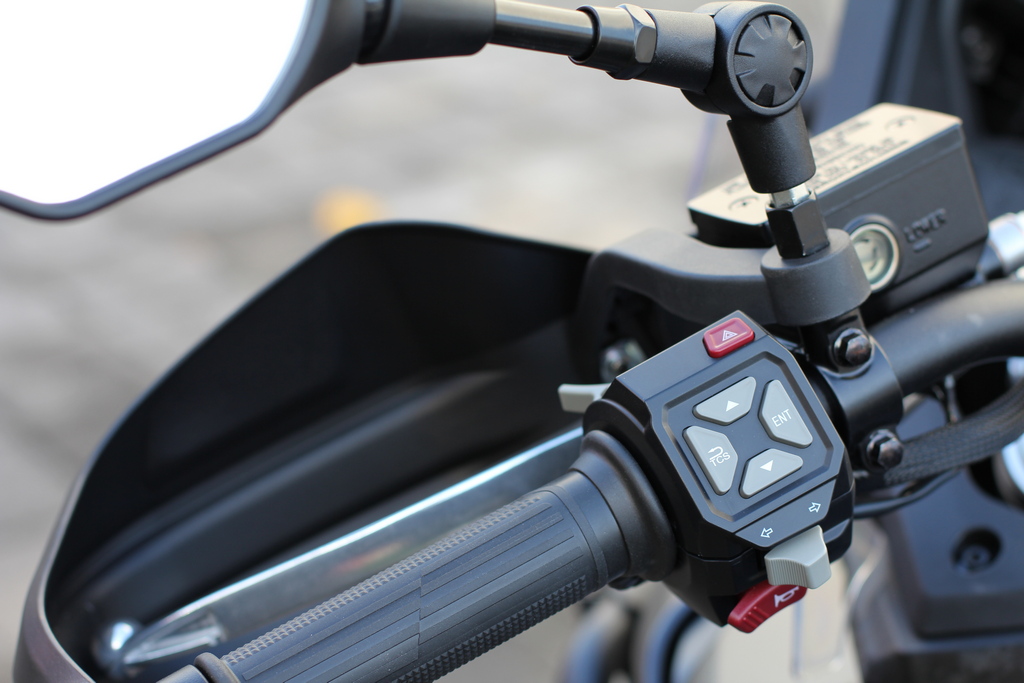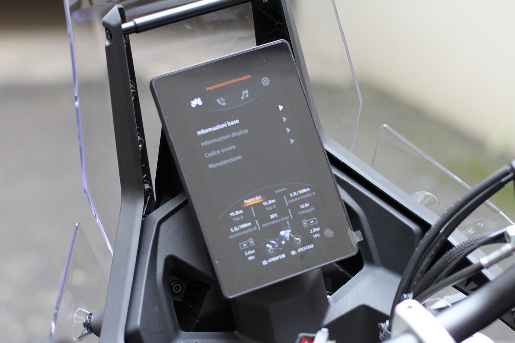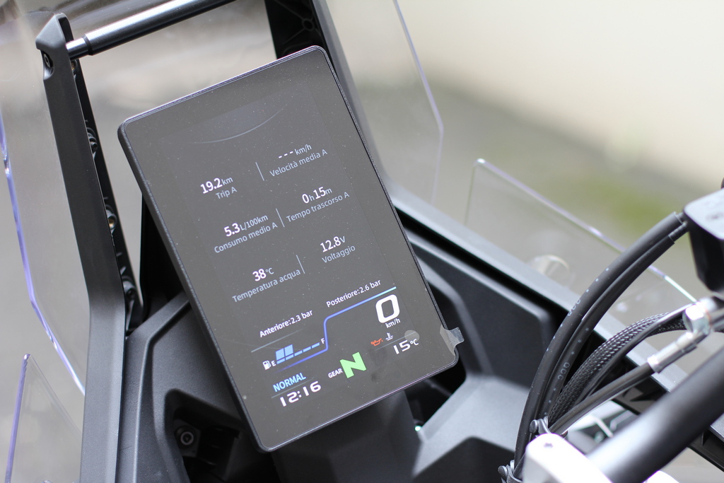 Il display è ben visibile e a seconda della mappa motore impostata mostra una grafica differente. L’accesso alle varie funzioni avviene tramite la pulsantiera posizionata sul blocchetto sinistro. Tra l’altro Abs, Tcs, fari di profondità e riscaldamento di sella e manopole si controllano direttamente con tasti dedicati e quindi si riduce di molto la necessità di smanettare con i menu.