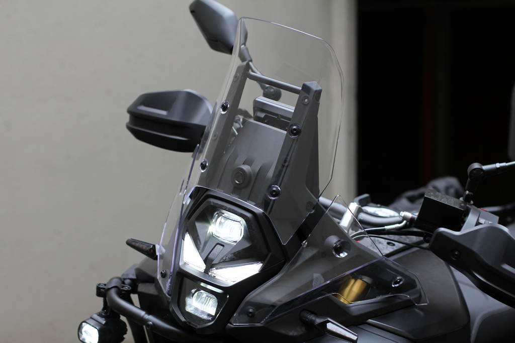 Pedane e manubrio sono nella giusta posizione e le gambe abbracciano molto bene il grande serbatoio che parte molto sottile in zona sella per poi aprirsi nella parte frontale, andando così a offrire un’ottima protezione alle gambe. Anche usando gli stivali con la punta in metallo non si rischiano di rovinare i carter perché su entrambi i lati sono presenti protezioni in plastica (facilmente sostituibili una volta usurate) e il passeggero ha a disposizione due pratiche maniglie a cui aggrapparsi. Le pedane a lui dedicate non sono ricoperte in gomma, ma le vibrazioni sono molto contenute e non danno mai fastidio. Il manubrio ampio facilita il controllo della moto e il fatto di toccare facilmente terra con entrambi i piedi rappresenta una maggiore sicurezza sia nelle manovre sia in fuoristrada, dove ci si può aiutare con la classica zampata per uscire da qualche intoppo. Sella e manopole riscaldate sono una grande comodità e funzionano bene. Possiamo impostare 3 differenti livelli senza dover armeggiare con il quadro strumenti e il riscaldamento arriva al corpo rapidamente. Non hanno memoria, per cui se spegniamo la moto dovremo riaccenderle, così come Abs, Tcs e faretti di profondità.