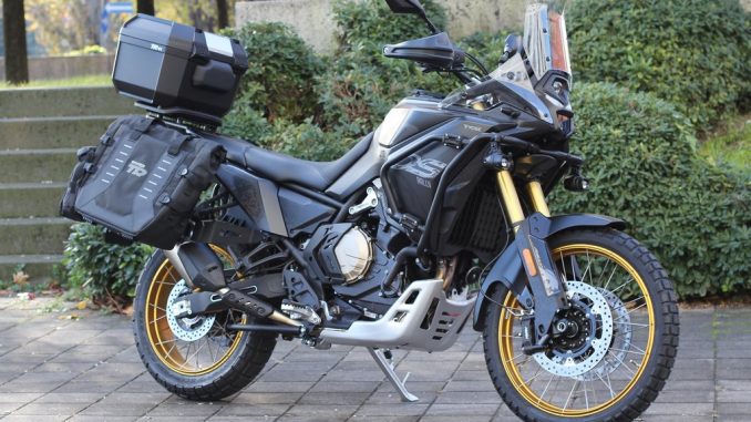 A sottolineare la qualità complessiva della componentistica l’impianto frenante è marchiato Nissin e prevede all’anteriore pinze radiali a 4 pistoncini, con dischi da 310 mm, e al posteriore un singolo disco da 240 mm con pinza flottante a 1 pistoncino. Un impianto che nella pratica si è rivelato non particolarmente aggressivo e che per questo risulta perfetto per un utilizzo in fuoristrada. Su strada più mordente in prima pinzata non guasterebbe, ma come sempre è una questione di compromesso e per garantire una frenata efficace in offroad bisogna sacrificare qualcosa su strada. A chi vorrà usarla prevalentemente in questo contesto basterà probabilmente sostituire le pastiglie per avere maggiori prestazioni. Abs e Traction Control sono escludibili e per il primo possiamo anche scegliere se escluderlo solo sulla ruota posteriore o su entrambe le ruote. Anche qui si vede la cura per la funzionalità e i dettagli perché per disabilitare i controlli non occorre entrare nei menu di sistema, basta premere gli appositi pulsanti presenti sui blocchetti. Al successivo riavvio per ragioni di sicurezza la moto riattiva tutto, ma proprio grazie ai pulsanti bastano pochi secondi per escluderli nuovamente. Peccato solo che il controllo di trazione sia un po’ troppo invasivo. Speriamo che con un prossimo aggiornamento i tecnici riescano a migliorarne il comportamento.