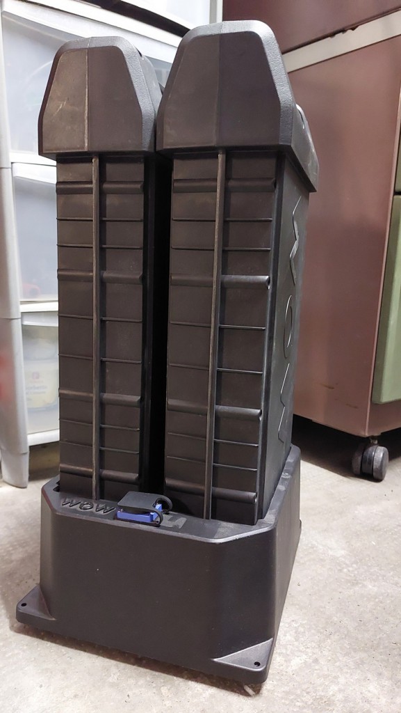 Diciamo subito che non è possibile circolare con una sola batteria, come avviene su alcuni modelli della concorrenza, poiché il sistema è progettato come un tutt’uno che può essere ricaricato anche a casa grazie alla base di caricamento fornita in dotazione e alla praticità con cui si possono trasportare le batterie dotate di maniglia, come si può ben vedere dalla vista laterale. In totale hanno una tensione di 72V e una capacità di 42Ah/3,0 kWh. Il tempo di ricarica, da 0% a 100%, è di circa 5 ore per un’autonomia fino a 95 km in funzione della mappatura scelta. In totale ne abbiamo tre: Eco, City e Sport. La prima di fatto trasforma il 775 in un “cinquantino” con velocità limitata a 45 Km/h e uno spunto da fermo più contenuto, ma comunque buono. È utile principalmente quando vogliamo risparmiare al massimo le batterie, ma mortifica chiaramente le ottime caratteristiche del mezzo. La più utilizzata in assoluto è sicuramente la City, che offre ottime prestazioni anche in accelerazione e una velocità massima di 75 Km/h. La Sport chiaramente è la più prestazionale e oltre a garantire un’accelerazione ancora più pronta consente di raggiungere una velocità di 85 Km/h, chiaramente a scapito del consumo di batteria. Il Wow 775 è anche dotato di retromarcia, azionabile premendo il già ciato tasto sul blocchetto di destra, utile nel caso dovessimo uscire di coda da parcheggi in discesa. Altrimenti non se ne sente la necessità, visto il peso contenuto di 113 Kg con le batterie montate (18 Kg la coppia) e la presenza delle maniglie del passeggero che agevolano le manovre da fermo. Da segnalare l’estrema silenziosità del motore, che non ha quel sibilo acuto e fastidioso tipico di alcuni mezzi elettrici provati.